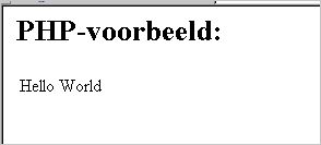 <html><head><title>PHP-voorbeeld</title></head><body><h1>PHP-voorbeeld.</h1><?PHP echo "Hello World"; ?></body></html>