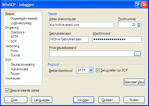 HiDrive: Versleutelde verbinding met WinSCP