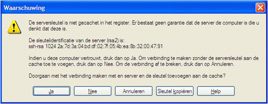 Zodra je op Inloggen hebt geklikt of de invoertoets hebt gebruikt, wordt er geprobeerd een verbinding met de STRATO HiDrive-server op te bouwen. WinSCP bouwt hierbij een versleutelde verbinding op, die je in het volgende venster te zien krijgt.