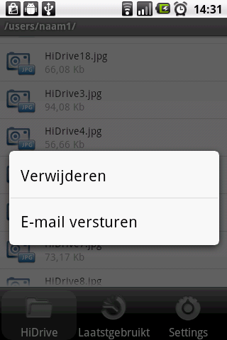 Bij het bekijken van bestanden worden deze van je HiDrive online opslagruimte naar je telefoon gedownload. Een directe toegang tot deze bestanden is daarbij alleen via een bestandsmanager mogelijk. Deze is gratis in de Google Playstore verkrijgbaar (bv. Astro Filemanager).