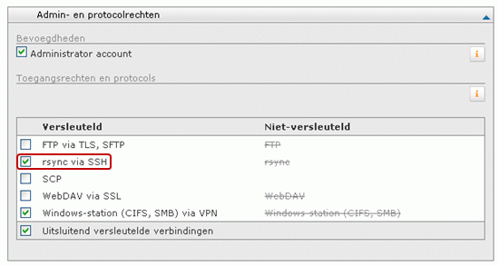In je HiDrive-login moet rsync nog geactiveerd worden, ga hiervoor naar accountbeheer.