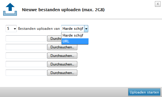 Naast de mogelijkheid om gegevens van je harde schijf te uploaden bestaat ook de optie om gegevens direct van een webserver te laden. Hiervoor kies je in het menu in plaats van harde schijf de optie URL. Vervolgens kun je het adres naar de gewenste bestanden aangeven.