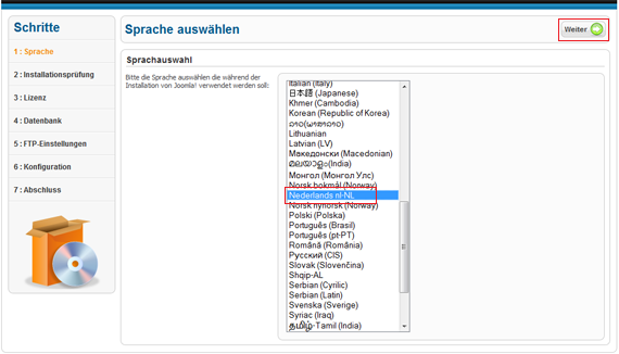 Kies de gewenste taal en klik op de knop ´volgende´.