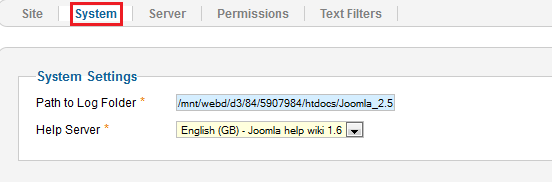 Je kunt de vastgelegde paden vinden in het administratiepaneel onder het punt "configuration".