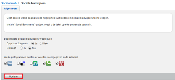 Kies de gewenste aanbieders uit en klik op de "opslaan" knop om de wijzigingen door te voeren. De sociale bladwijzers worden nu op je productpagina's weergegeven.