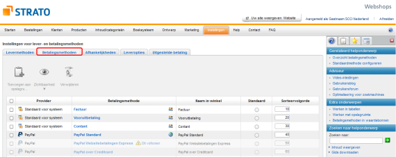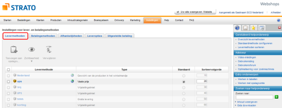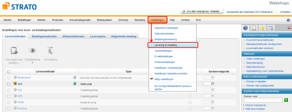 Zijn verzend- en betalingswijzen al standaard in de STRATO Webshop ingericht?