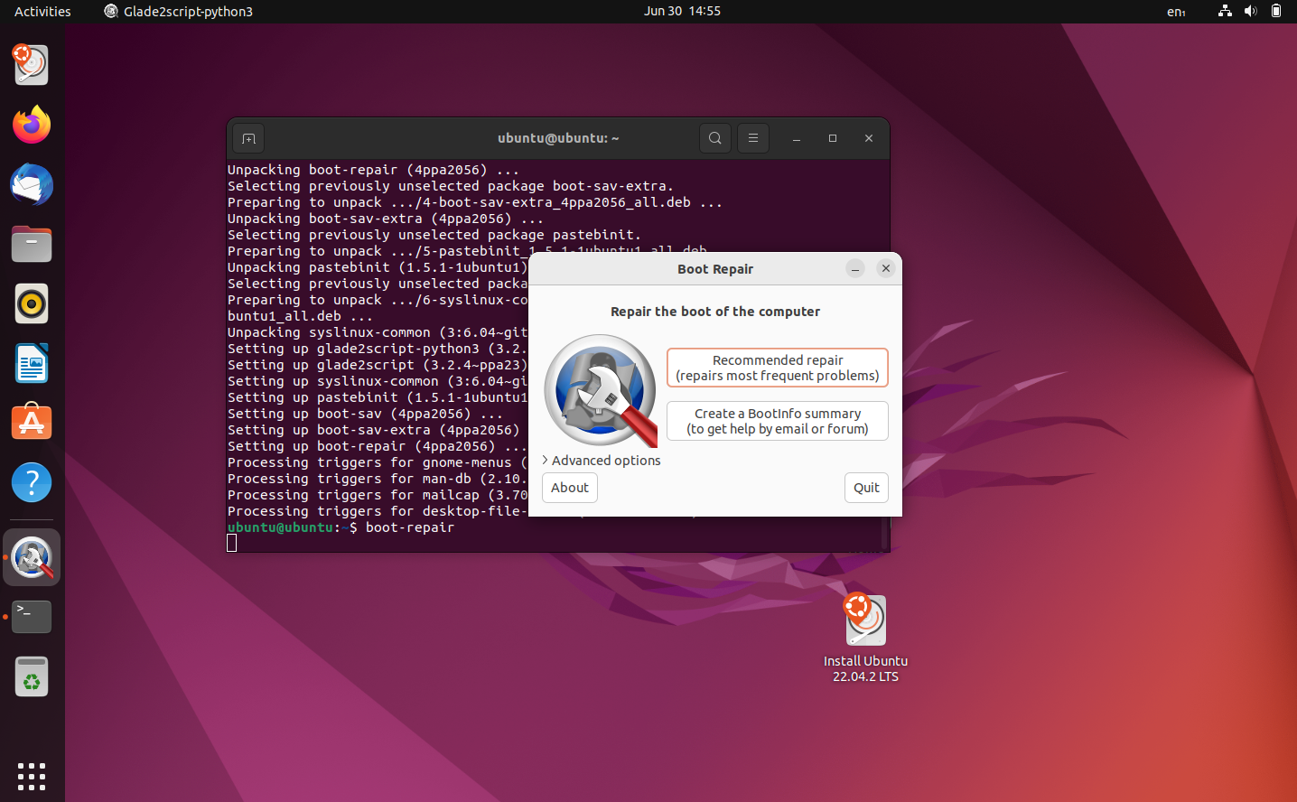sudo apt-get install -y boot-repair