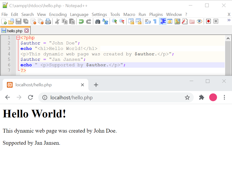 Nu gaan we naar het script page1.php via de URL http://localhost/page1.php.